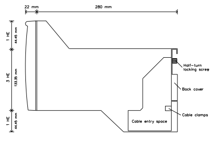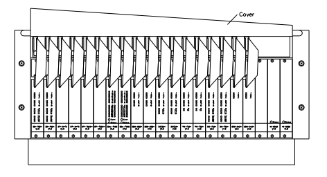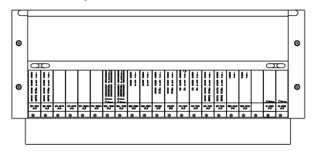 Un chasis de 19" tiene 21 ranuras para módulos (cada una de 4TE de ancho). Estas ranuras están numeradas del 1 al 21, comenzando por el lado izquierdo del chasis. En el IOCHAS-0002R, las ranuras del 1 al 18 están disponibles para módulos de E/S. Están configuradas en pares. Detrás del panel frontal ciego en la ranura 19, se encuentra el IOBUS-HB2A. Las ranuras 20 y 21 contienen los módulos IO-0002. El IOB-0002R proporciona los 18 conectores de E/S en el centro del chasis. El IOBUS-HB2R proporciona los 18 conectores de cable plano en la parte superior del chasis.